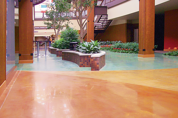 سختکنندهها/چگالندههای شیمیایی مایع با انواع تکنیکهای تزئینی بتن، از جمله رنگآمیزی اسیدی، به خوبی کار میکنند، اما زه توصیه میکند که اگر محصولی خاصیت دفع آب را نشان میدهد، پیمانکار مراقب ناسازگاری باشد؛ به هر حال، شما میخواهید رنگ اسیدی به سطح نفوذ کند. در مورد جلوه بصری این محصولات، او توضیح میدهد که سختکنندهها/چگالندهها نباید ظاهر بتن را خیلی تغییر دهند. «آنها رفتار سطح بتن را تغییر میدهند.»